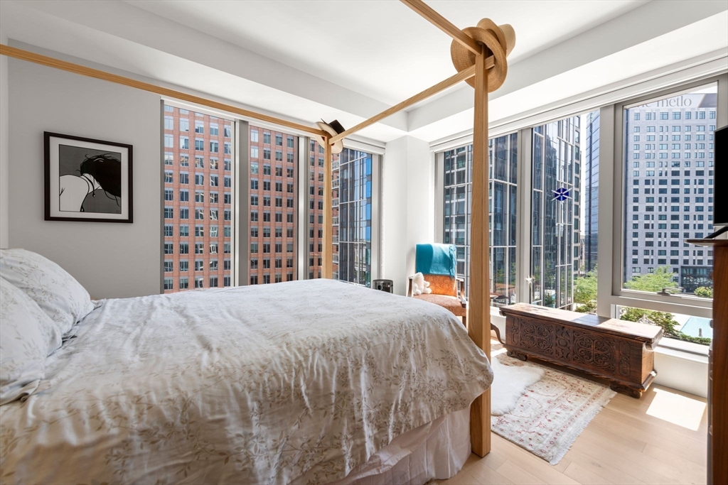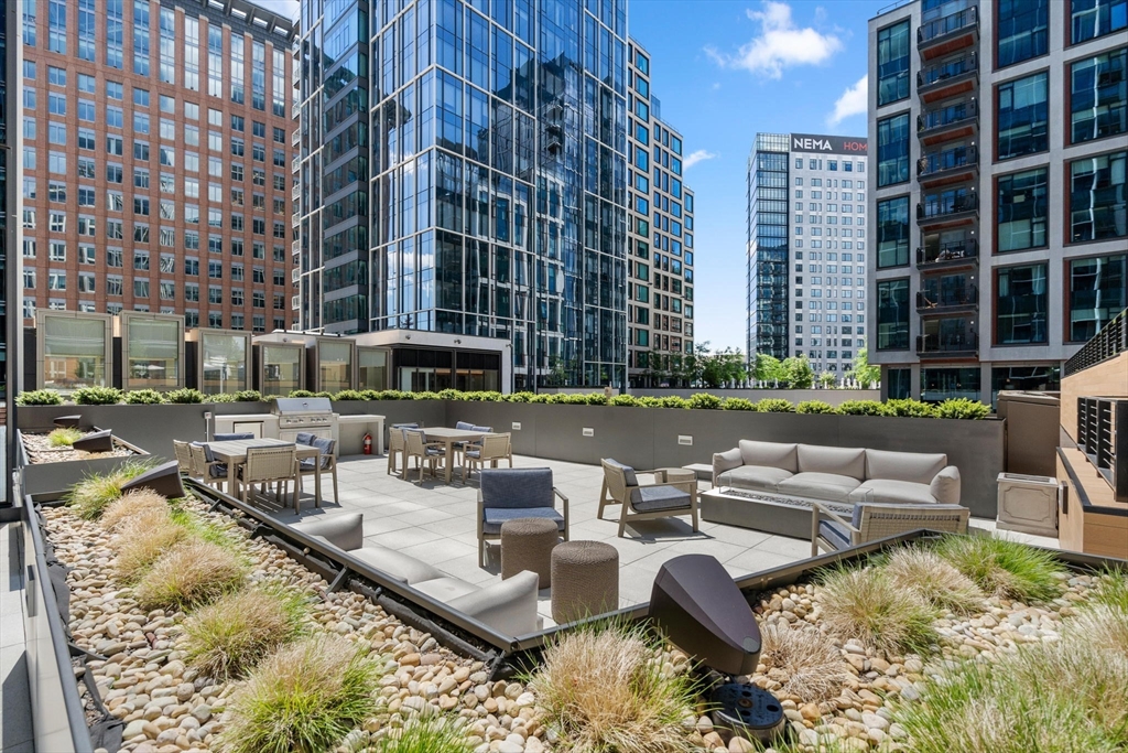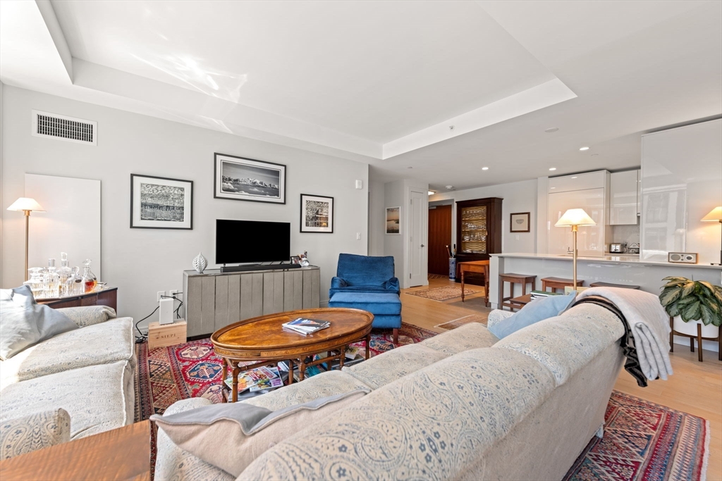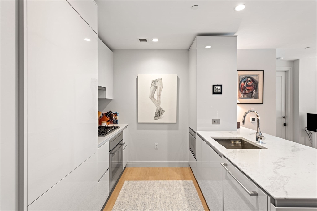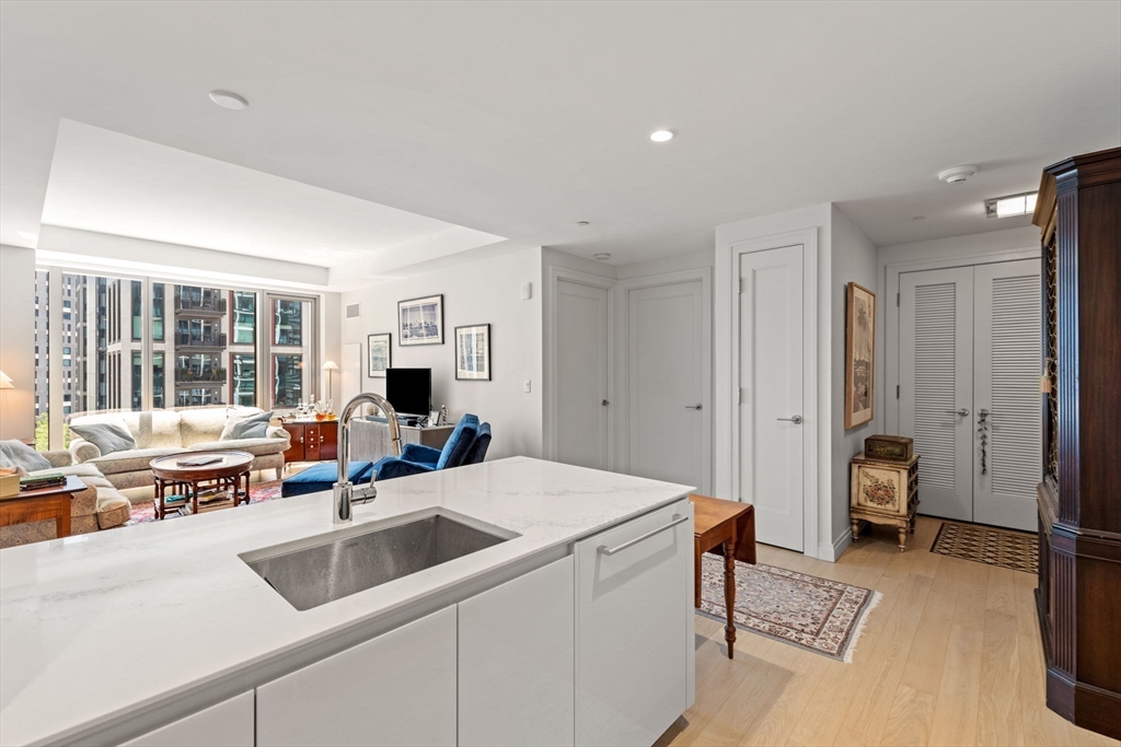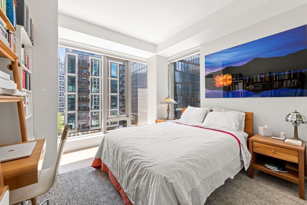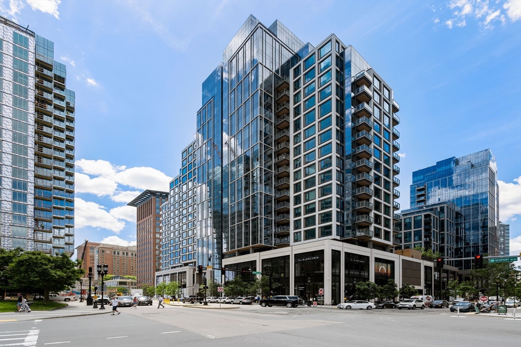 This stunning south facing 2 bed 2 bath with floor to ceiling windows overlooks a bustling Seaport courtyard, with one of the best views and layouts in the building this unit has it all. The open concept kitchen features custom Italian cabinetry, Thermador appliances, gas cooking and a breakfast bar with quartz countertops. White oak flooring, en-suite marble master bath, and W/D in-unit are just a few fantastic features of the home. Upgrades include custom closets and Hunter Douglas electric blinds; 1 Garage Valet parking space is included. Echelon Seaport is a full service luxury elevator building with 24/7 concierge and doorman and over 50,000 square feet of indoor and outdoor amenities. Relax or entertain by the outdoor terrace and fire-pits or on the 22nd floor sky lounge. Enjoy 3 pools (one indoor), state-of-the art fitness center, spa, indoor basketball court and golf simulator. Steps to the silver line, grocery store, and the finest restaurants and shopping in all of Boston.