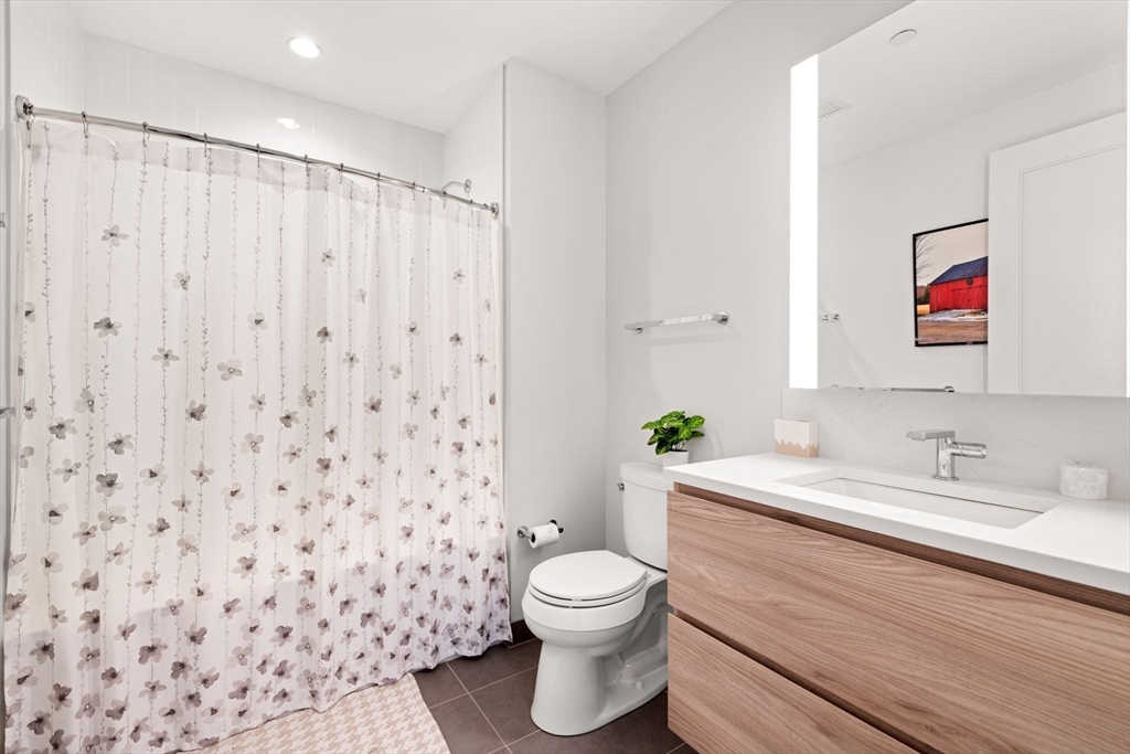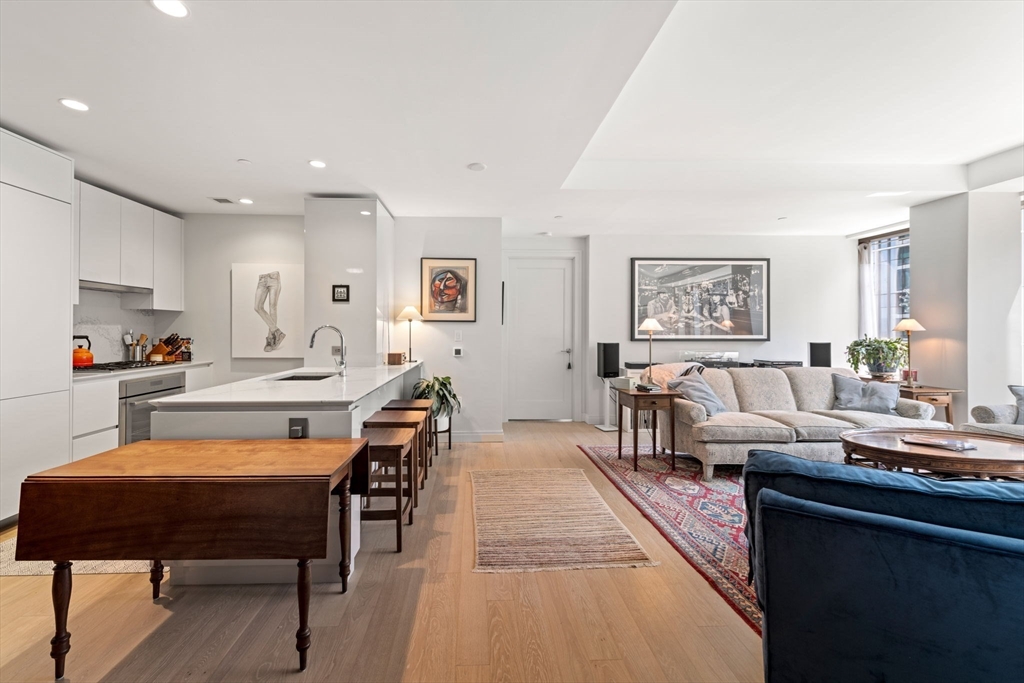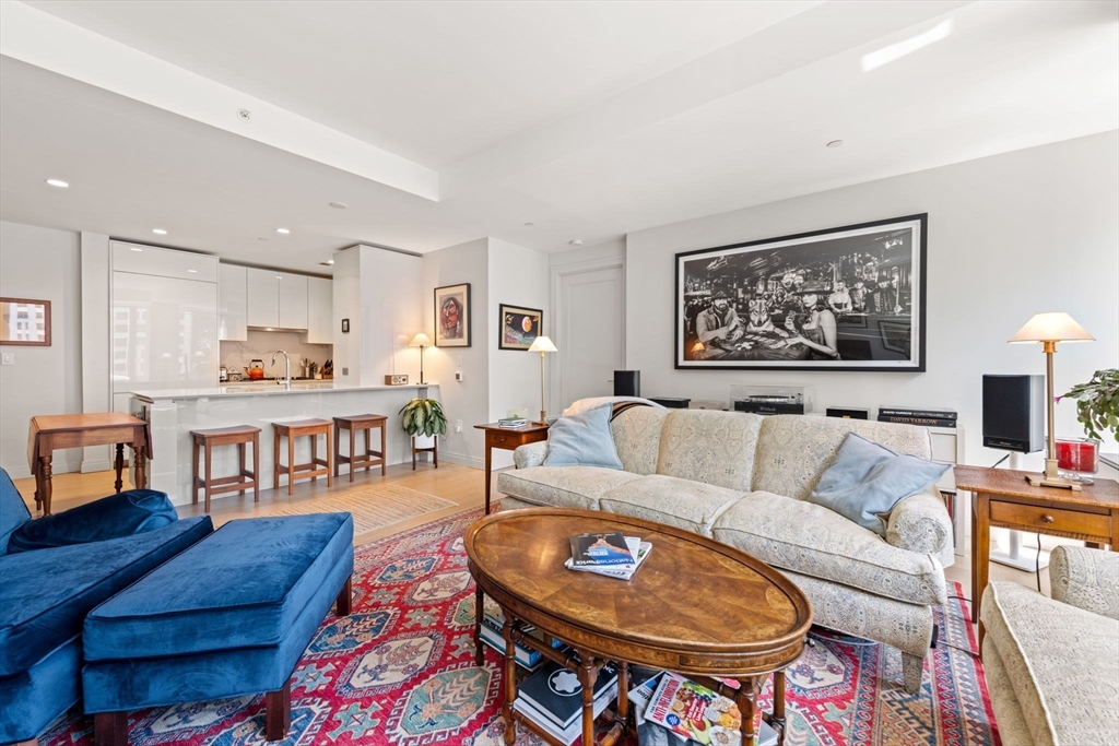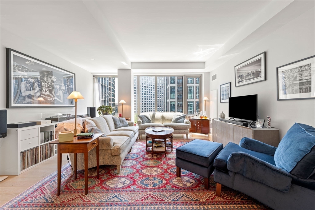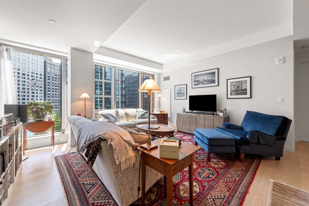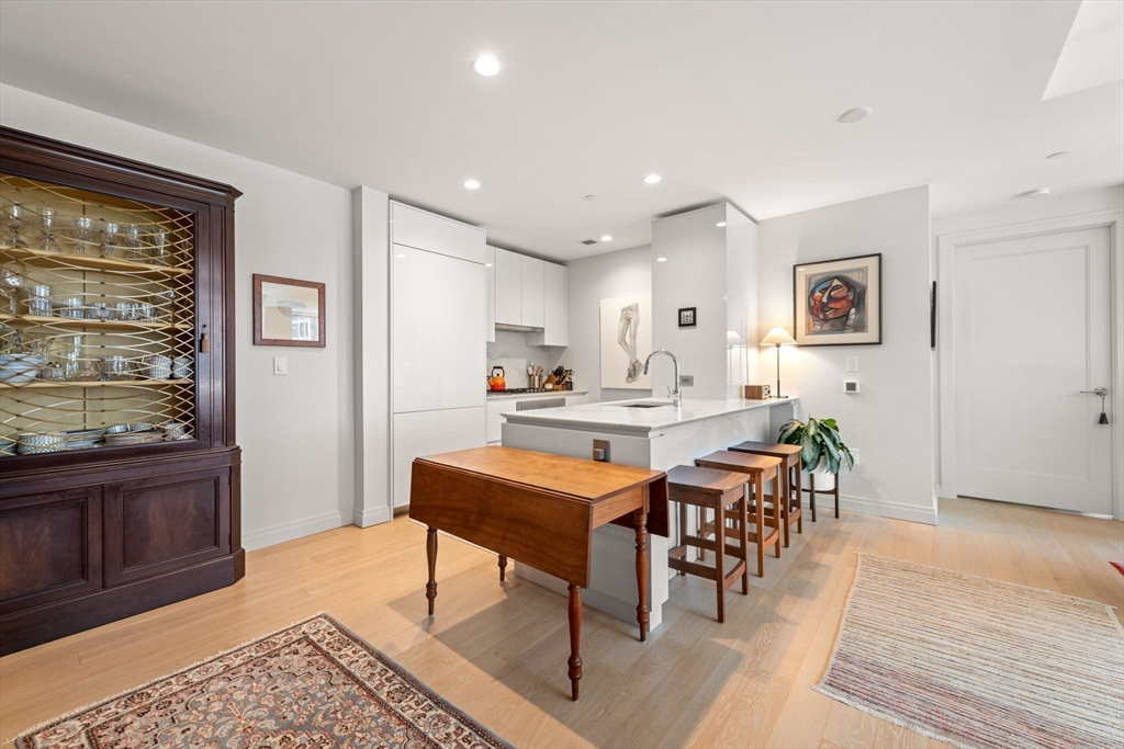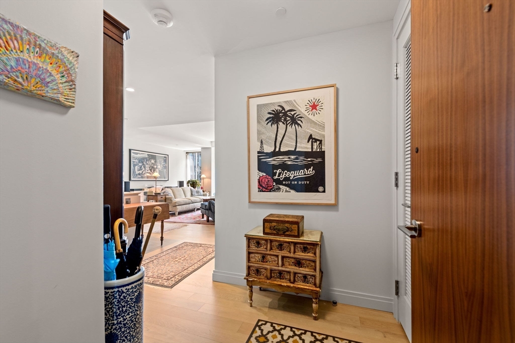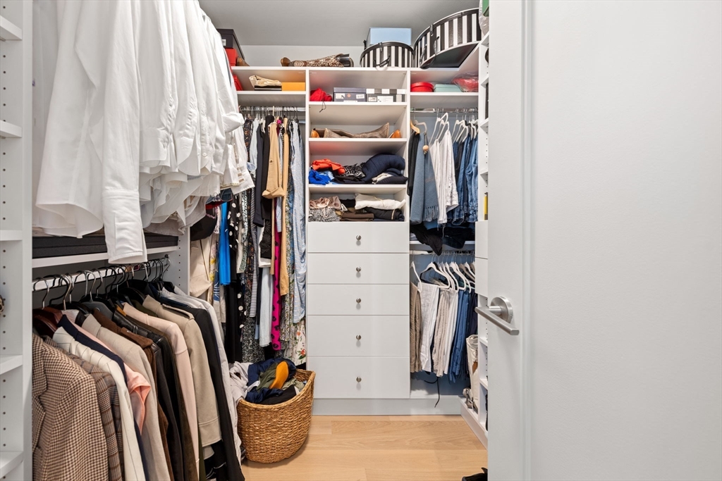 This stunning south facing 2 bed 2 bath with floor to ceiling windows overlooks a bustling Seaport courtyard, with one of the best views and layouts in the building this unit has it all. The open concept kitchen features custom Italian cabinetry, Thermador appliances, gas cooking and a breakfast bar with quartz countertops. White oak flooring, en-suite marble master bath, and W/D in-unit are just a few fantastic features of the home. Upgrades include custom closets and Hunter Douglas electric blinds; 1 Garage Valet parking space is included. Echelon Seaport is a full service luxury elevator building with 24/7 concierge and doorman and over 50,000 square feet of indoor and outdoor amenities. Relax or entertain by the outdoor terrace and fire-pits or on the 22nd floor sky lounge. Enjoy 3 pools (one indoor), state-of-the art fitness center, spa, indoor basketball court and golf simulator. Steps to the silver line, grocery store, and the finest restaurants and shopping in all of Boston.