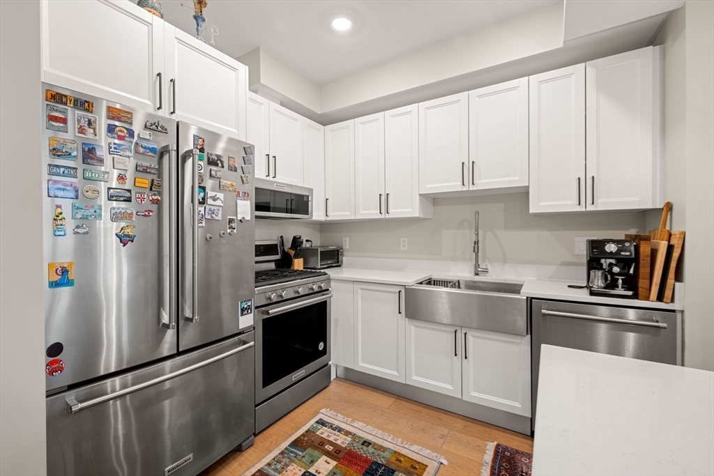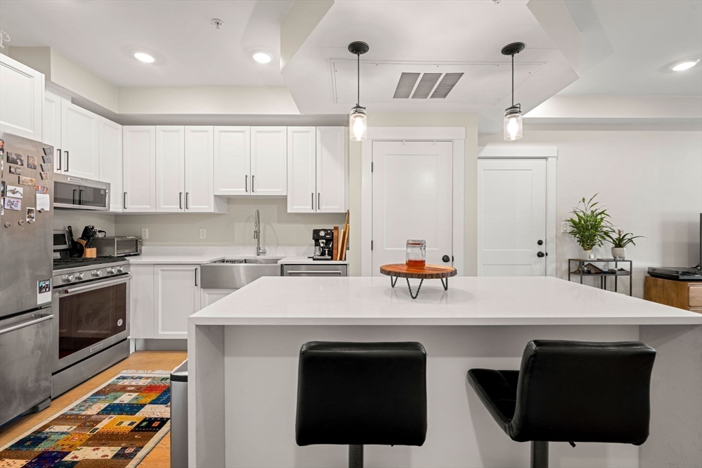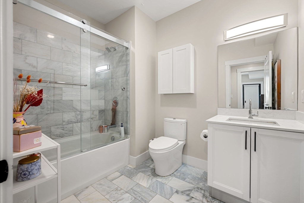 New construction condo in an unbeatable Cambridge meets Somerville location!! This luxury 1 bedroom features a modern open kitchen with quartz countertops, stainless steel appliances, apron sink, and a grand center island with additional storage. Enjoy hardwood floors throughout, large marble tiled bath, walk-in closet, in unit laundry, Central AC and a Private Balcony all just 2 blocks to the center of Inman square and 4 blocks to Union Square. This Elevator building offers bike storage, a private storage room and 1 Garage Parking space! Moments to grocery stores, restaurants and shopping as well as easy access to public transportation via express bus lines and the new MBTA green line. Available 9/1.